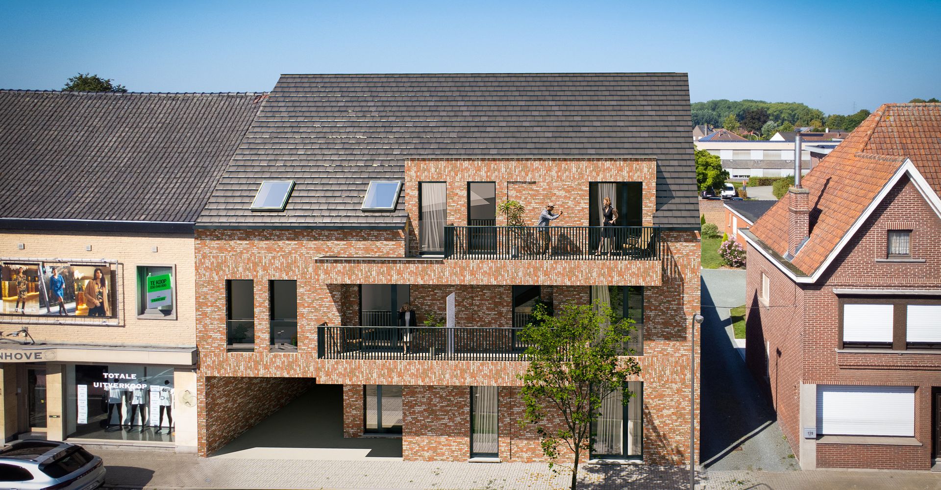 In het hart van Sleidinge, een deelgemeente van Evergem, verrijst binnenkort Residentie Quinn, een kleinschalig project dat modern comfort en een centrale ligging perfect combineert. Deze residentie, ontworpen door AWP Buro, omvat vijf lichtrijke appartementen met twee of drie slaapkamers, variërend in oppervlakte van 83 m² tot 116 m².
