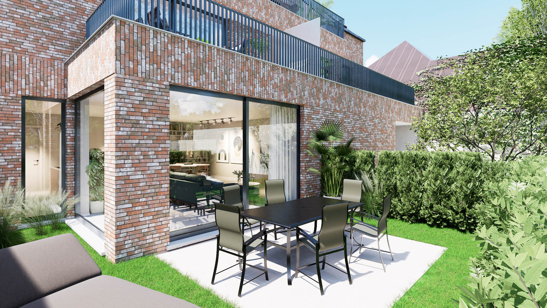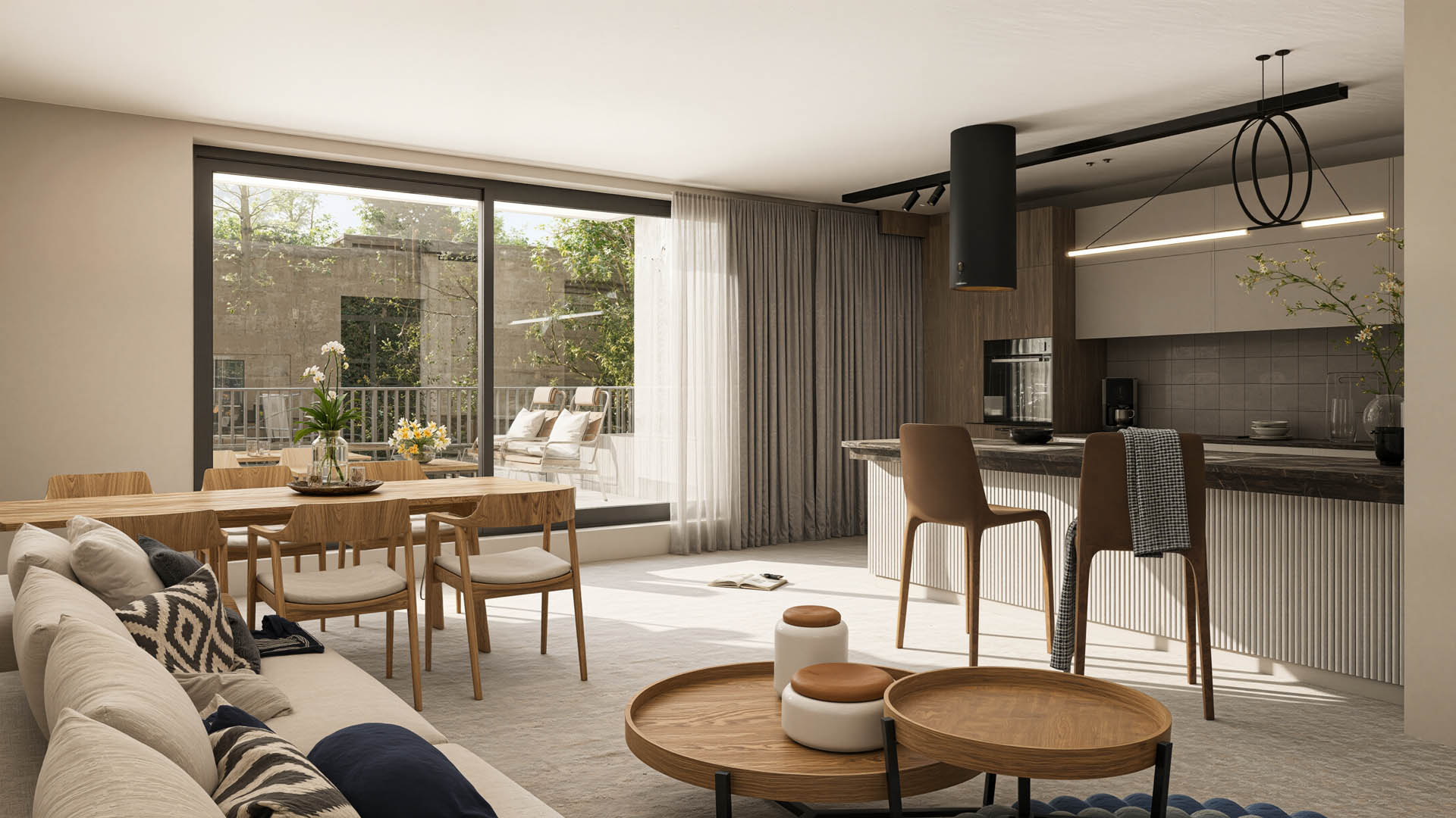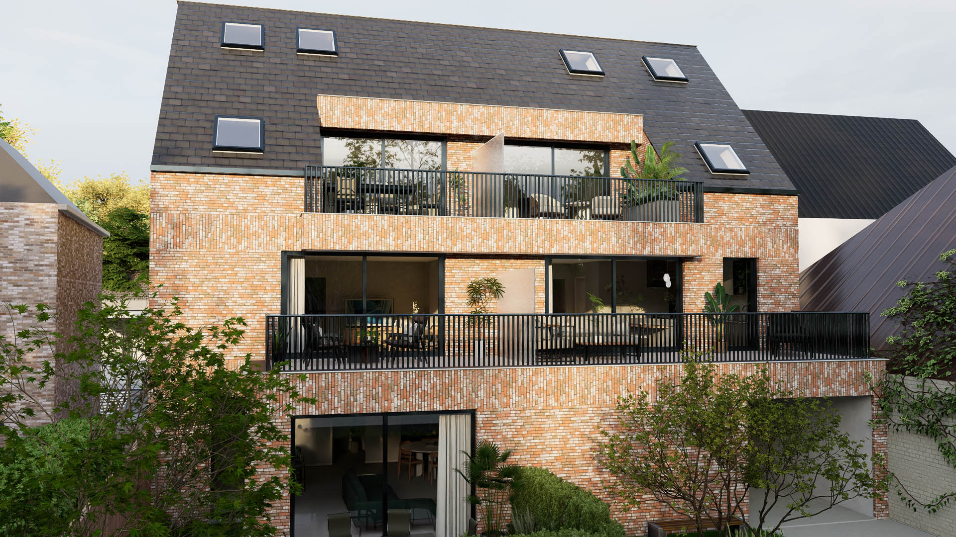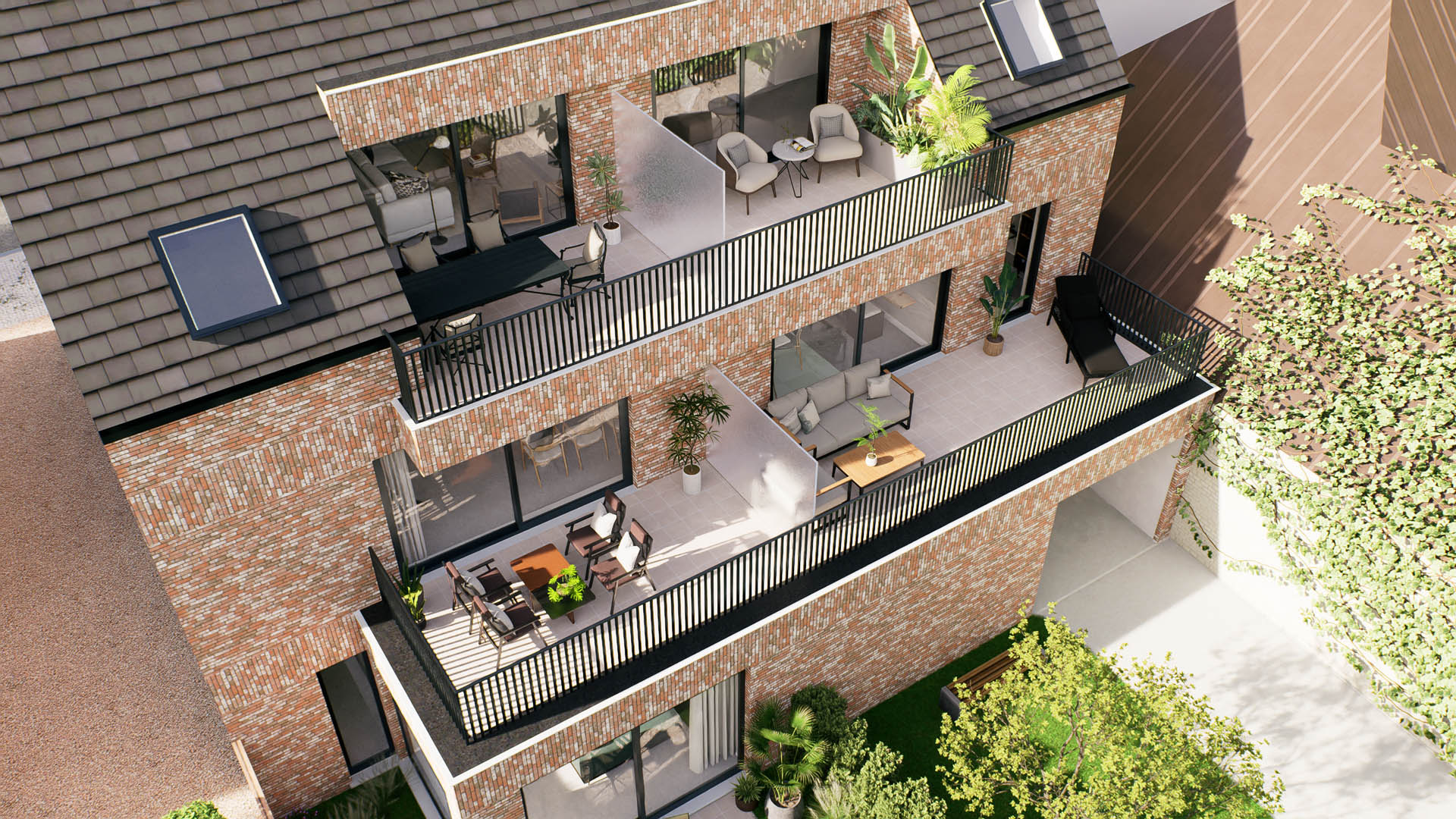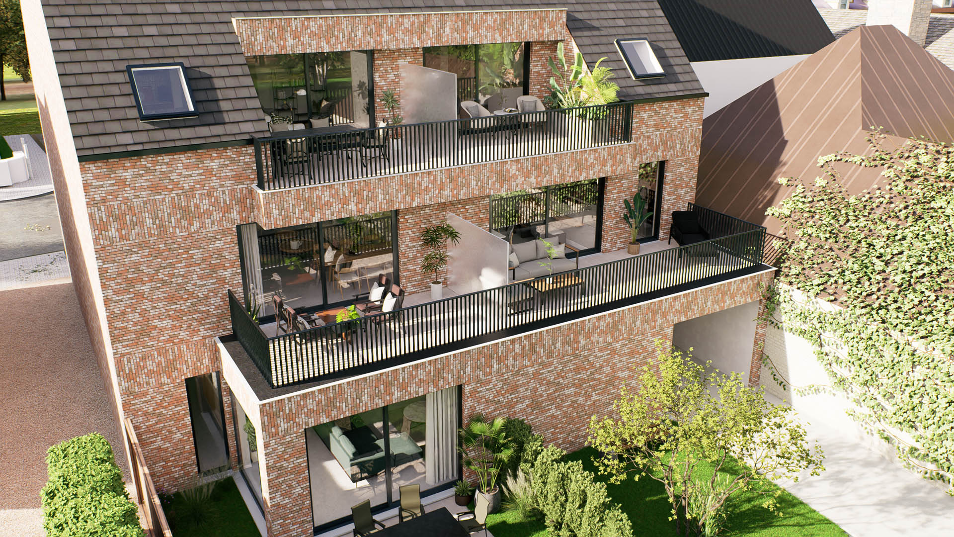 De appartementen zijn ontworpen om aan al je wensen te voldoen. Elk appartement beschikt over een ruim terras, en het gelijkvloersappartement heeft bovendien een privétuin van 46 m². De architectuur integreert naadloos met de omgeving, terwijl de binneninrichting een strakke en moderne uitstraling heeft, met veel aandacht voor natuurlijk licht.