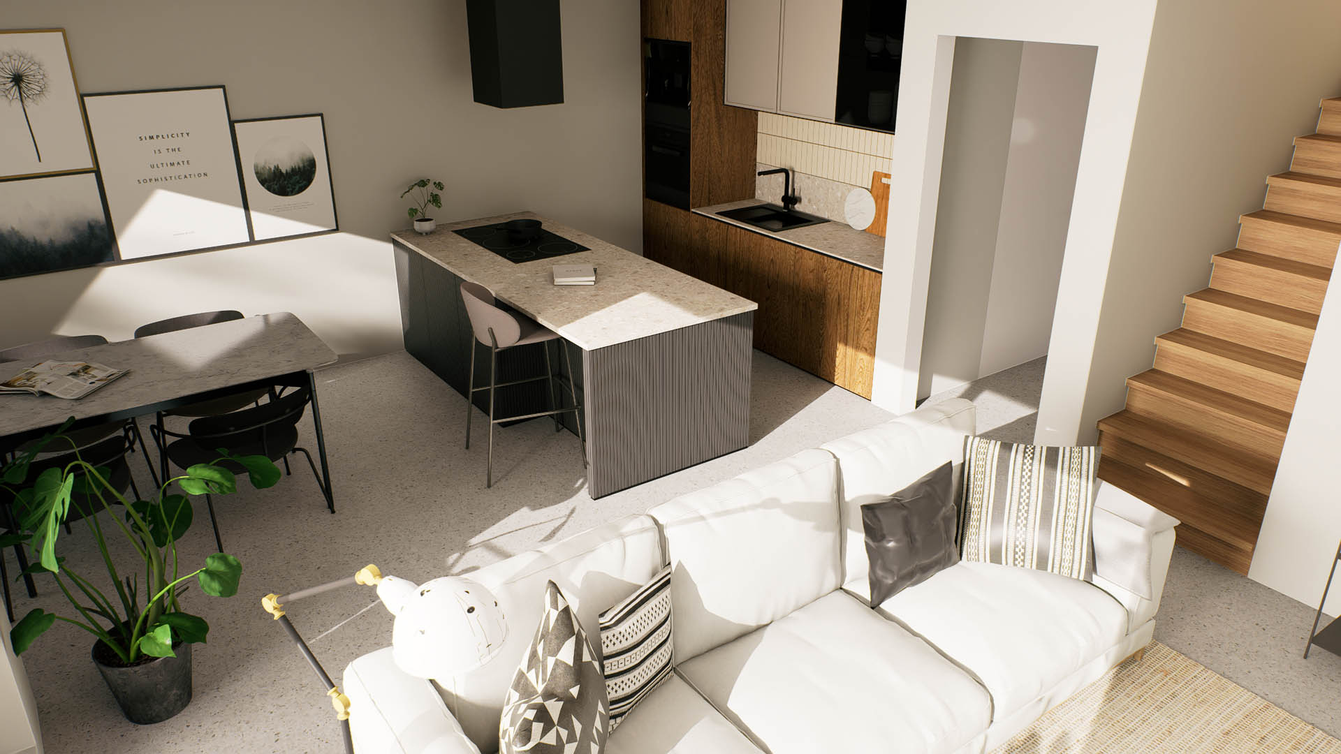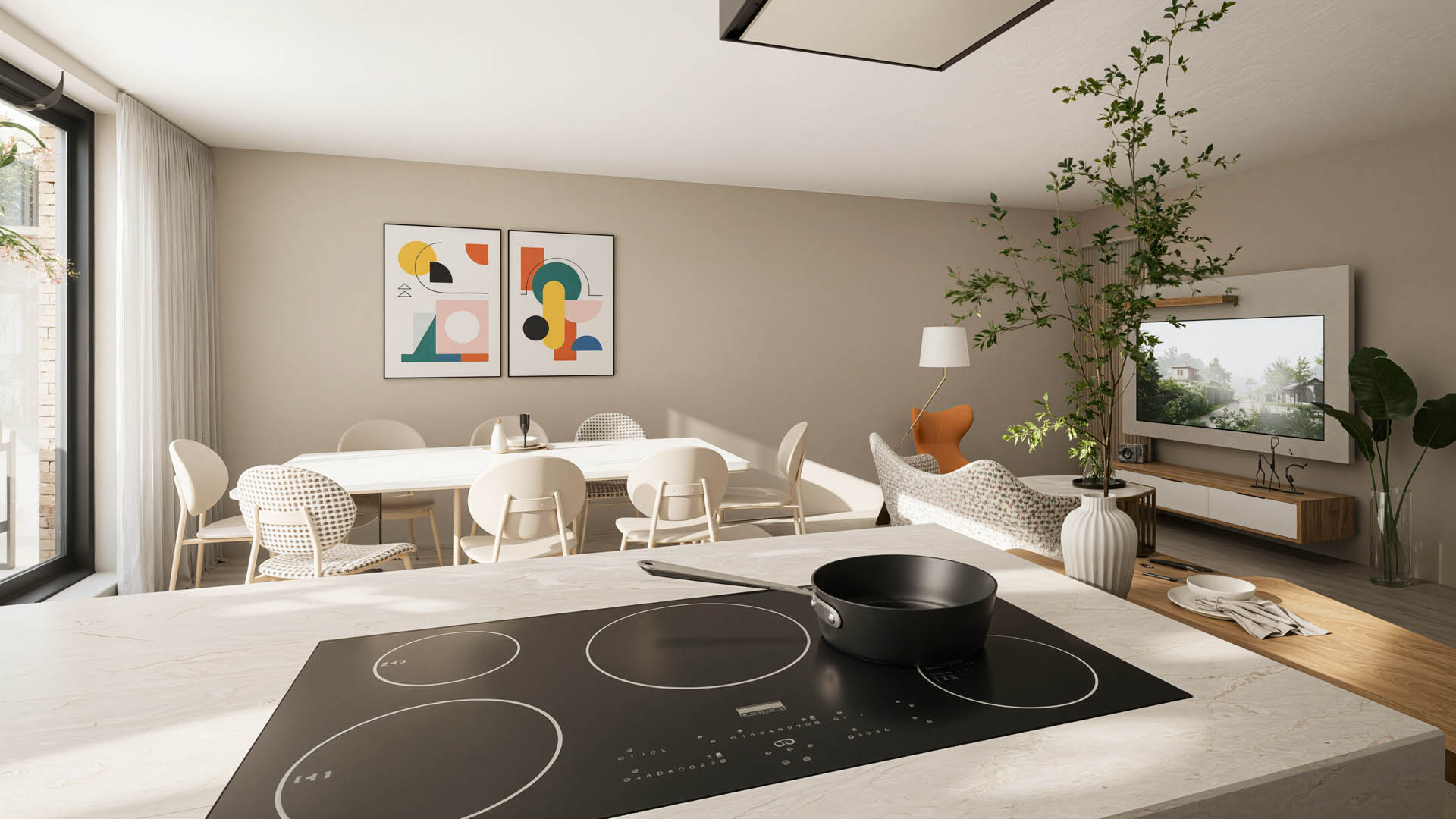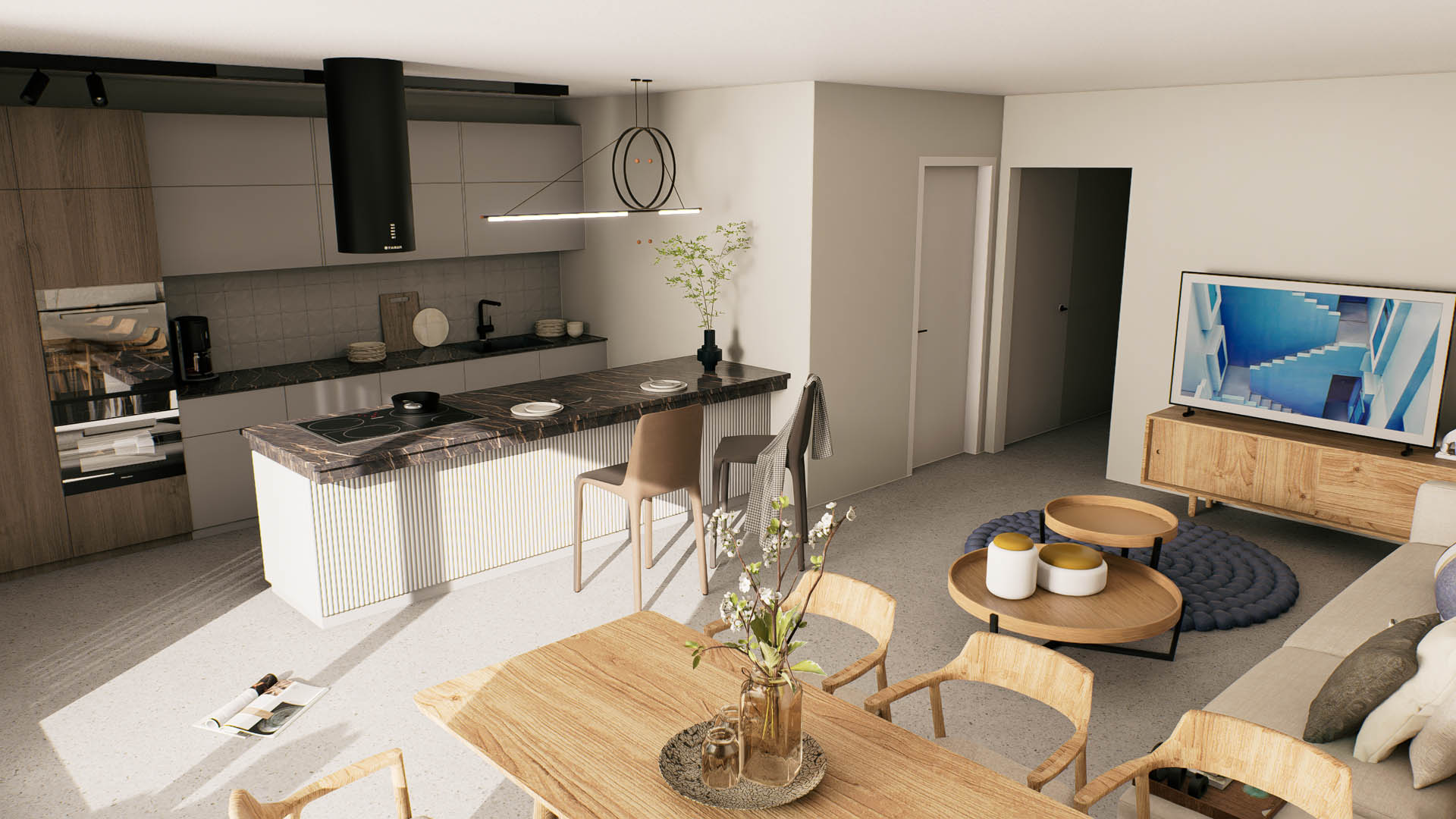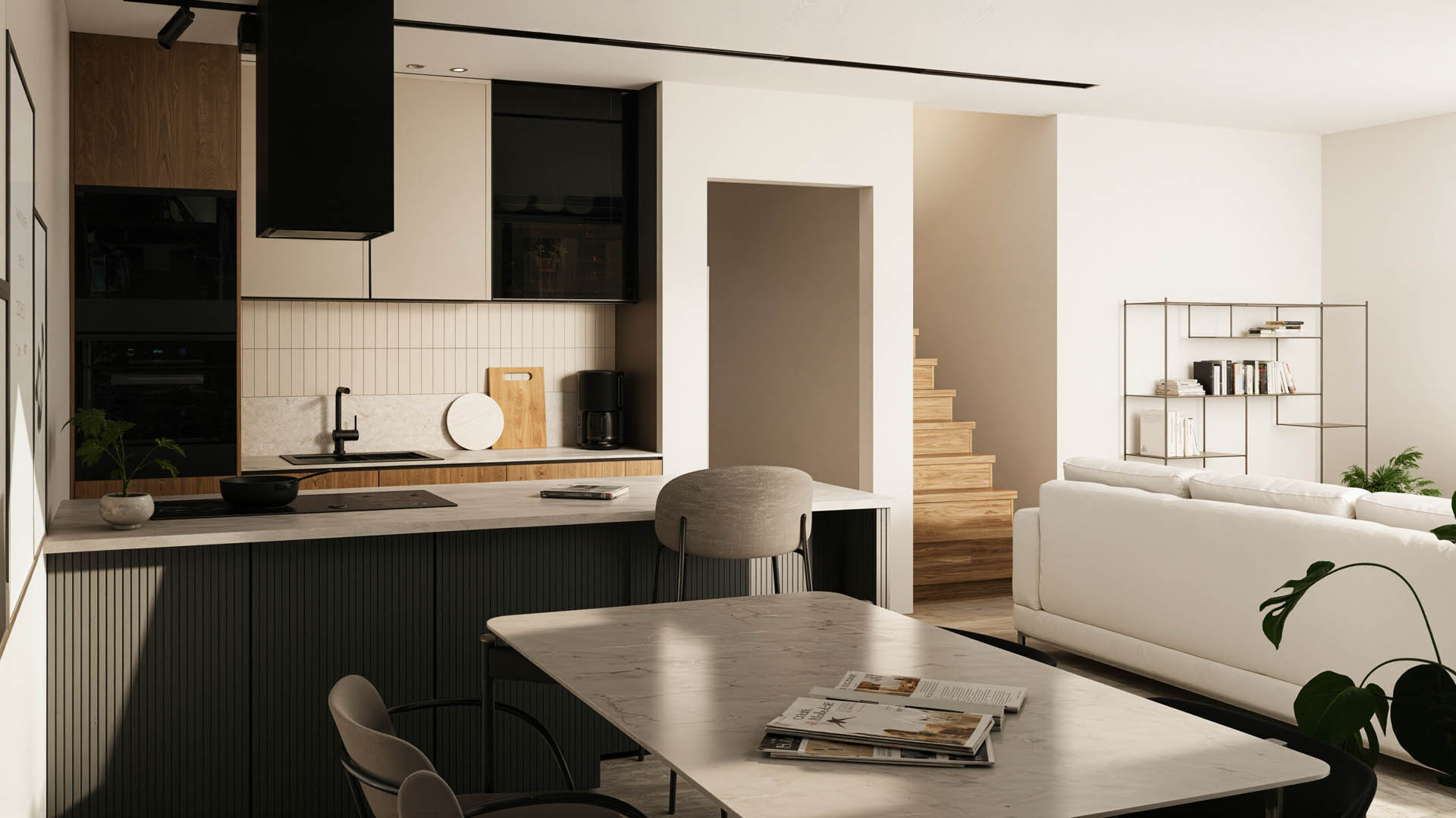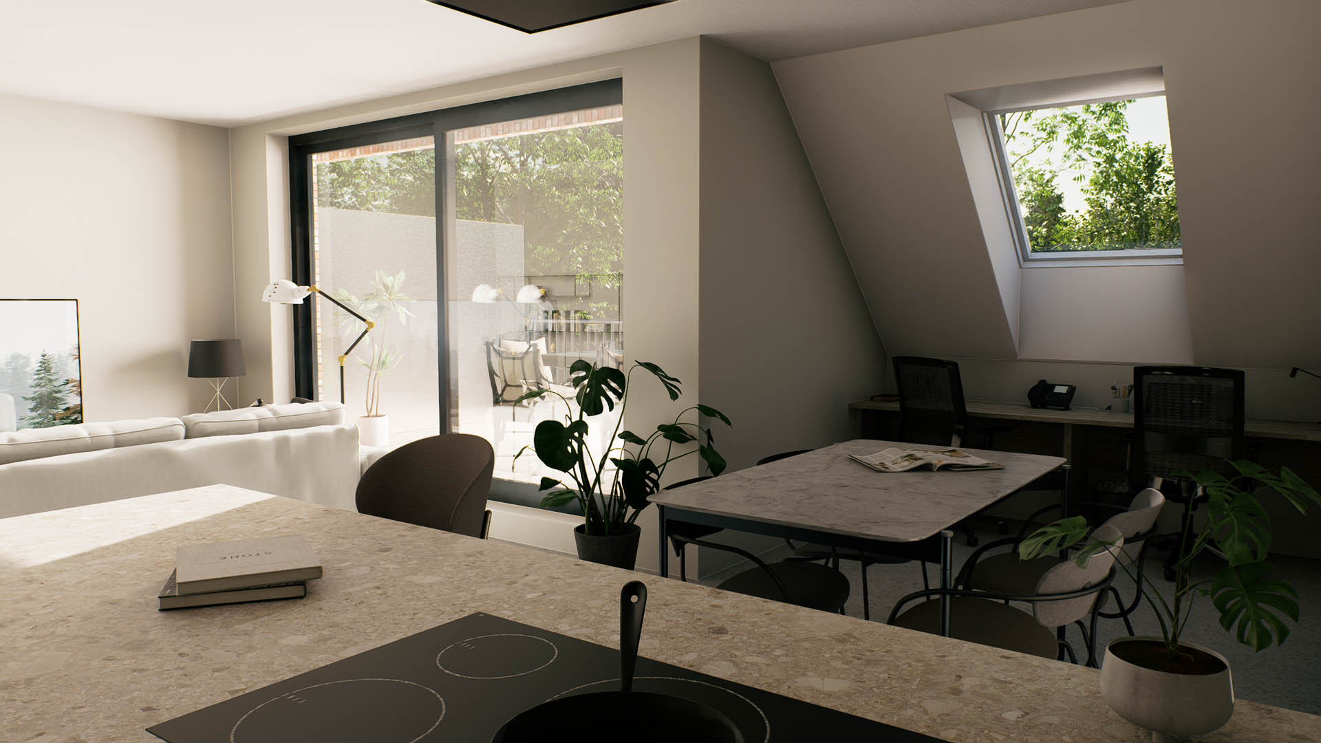 De appartementen zijn ontworpen om aan al je wensen te voldoen. Elk appartement beschikt over een ruim terras, en het gelijkvloersappartement heeft bovendien een privétuin van 46 m². De architectuur integreert naadloos met de omgeving, terwijl de binneninrichting een strakke en moderne uitstraling heeft, met veel aandacht voor natuurlijk licht.